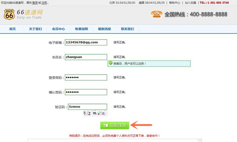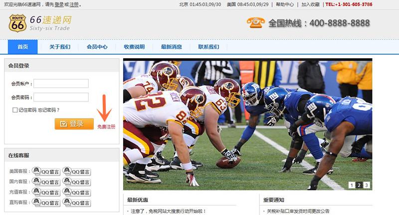 1.登陆66速递官方网站(www.rt66express.com ),进入会员中心-立即注册