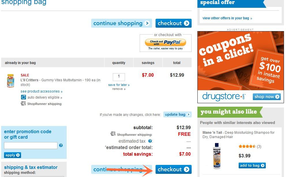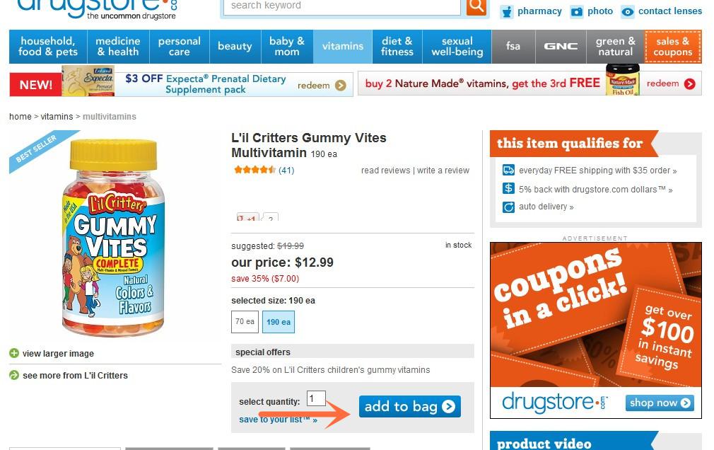 1、打开http://www.drugstore.com/,选择你想要购买的东西,加入购物车