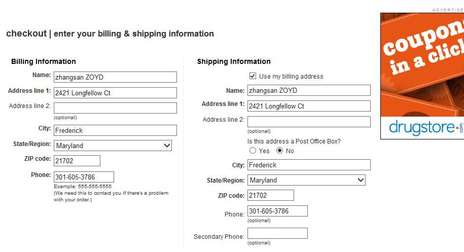 drugstore账单地址没有美国以外的选择,而且也对卡片的验证不是很严格,所以信用卡账单地址就可以直接用我们转运的地址即可。