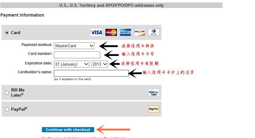 6、检查卡片、地址信息和购物车中的东西,确认无误之后,点击“place your order”提交订单完成购物流程,接下来就等待网站给您的发货邮件了。