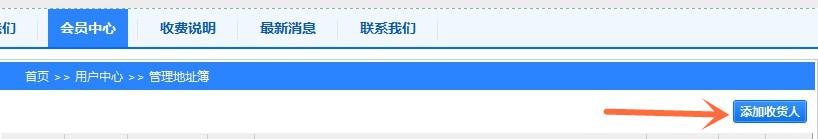 1、添加收货地址,点击用户中心里的“收件地址”添加收货人地址